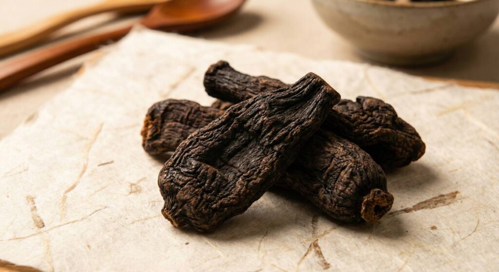 - Prepared (Shu Di Huang): Steamed with wine until black. It becomes “warming” and is a heavy tonic for blood building (often used for fertility/anemia).